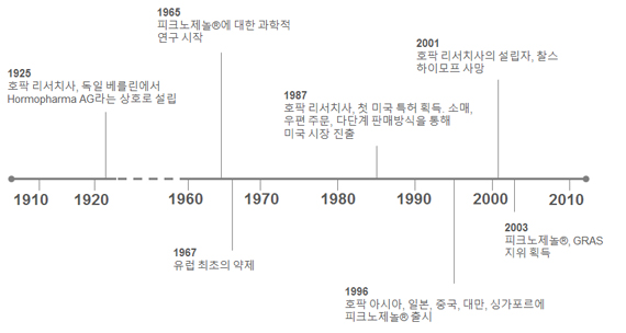 호팍 리서치사는 프랑스 해안의 소나무 껍질에서 추출한 피크노제놀®을 처음으로 개발하여 세계에 독점 공급하고 있습니다. 호팍 리서치사는 피크노제놀®의 생산 및 판매 독점권을 보유하고 수백 개의 회사에 혁신적이고 효과적인 피크노제놀® 제품 포뮬러의 개발을 지원하고 있습니다.