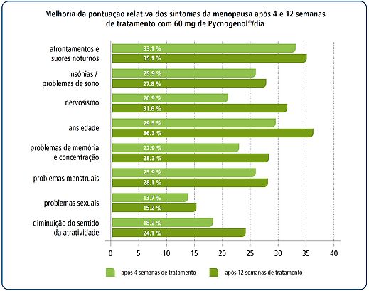 • Pycnogenol® demonstrou aliviar significativamente os sintomas da menopausa, em três estudos controlados que incluíram um total de 450 mulheres na menopausa.